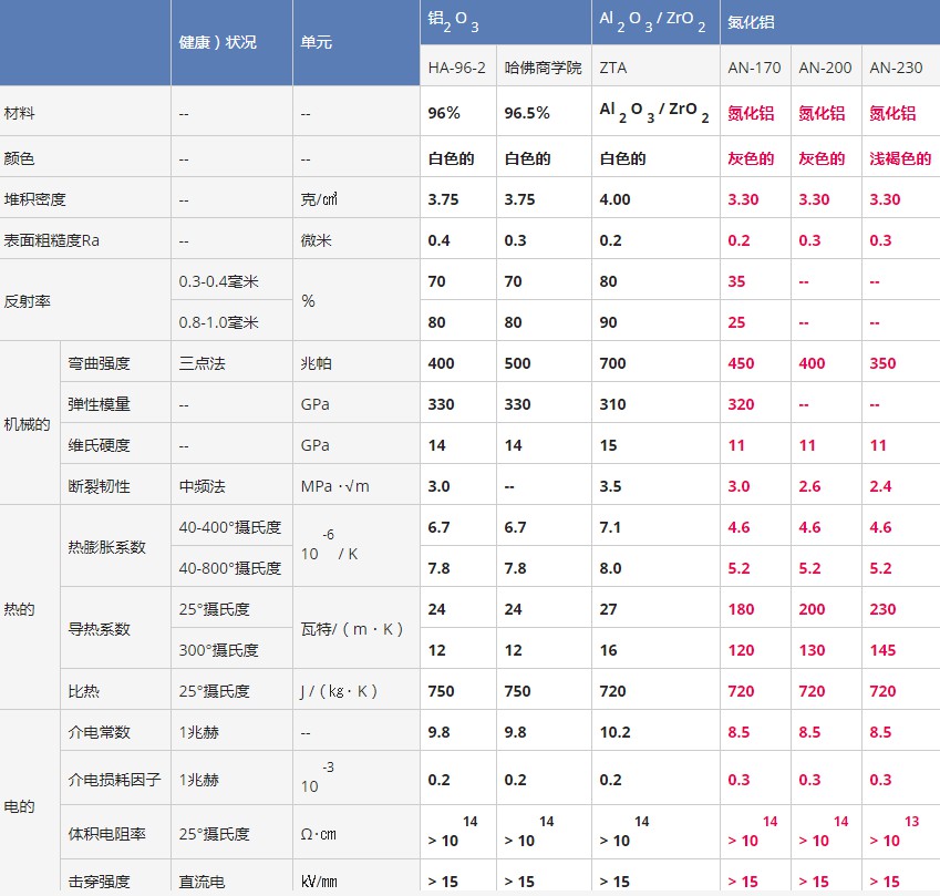 熱學(xué)特性:耐熱性和導(dǎo)熱性強(qiáng)(高于氧化鋁)